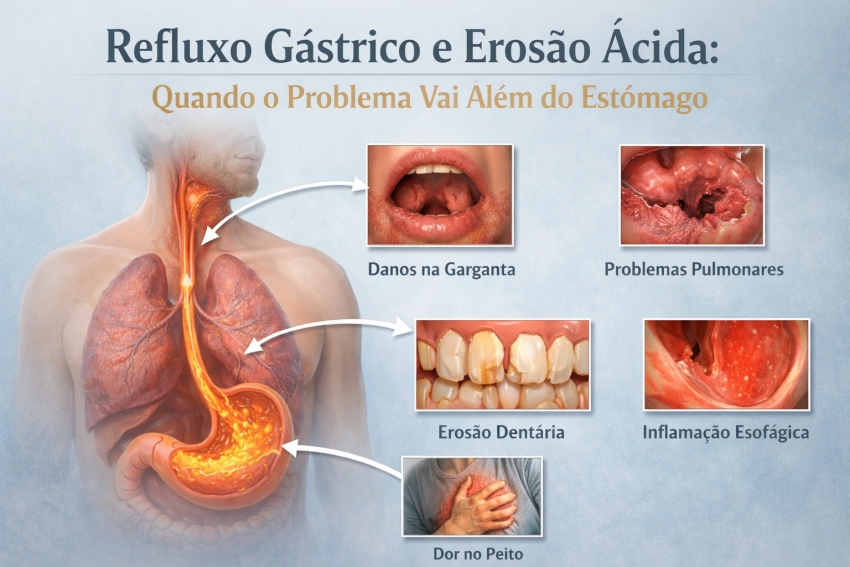 O refluxo gástrico é um problema bastante comum e costuma ser associado apenas a sintomas como azia e queimação. No entanto, o que muitas pessoas desconhecem é que ele também pode causar sérios danos à saúde bucal, principalmente por meio da chamada erosão ácida dos dentes.