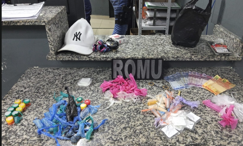 Ao tentar empreender fuga, porém foram alcançados em seguida. Foi encontrado na posse de um dos indivíduos dez invólucros de cocaína e vinte e cinco pedras de crack e uma sacola contendo 36 invólucros de maconha, 41 invólucros de cocaína e 22 invólucros de crack. Já com o outro homem abordado, foram encontradas duas pedras de crack, adquiridas naquele exato momento.